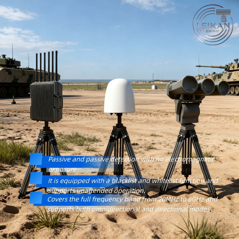 - : Solo recibe pasivamente (sin transmisión de señal electromagnética) y detecta las señales espontáneas de los drones, lo que permite la identificación de la marca, el modelo y la frecuencia de los drones no autorizados. No se ve afectado por la lluvia, la nieve o la niebla, y admite la detección las 24 horas del día, los 7 días de la semana, en todas las condiciones meteorológicas y en 360°, cubriendo más del 95% de los drones disponibles en el mercado.Posicionamiento preciso y alerta temprana de largo alcance